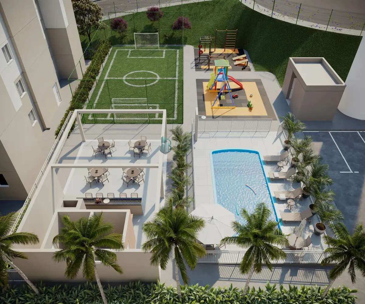 Apartamento Piso laminado de madeira na sala e nos quartos Tomada USB na sala Banheiro revestido até o teto (box e parede hidráulica) Bacia sanitária com duplo acionamento Bancada da cozinha em granito com cuba em inox Torneiras com arejador e redutor de vazão Área de serviço com tanque em inox Empreendimento Condomínio fechado Portaria com sistema de monitoramento Acesso por biometria digital na portaria e entrada das torres Vagas demarcadas Lazer entregue decorado e mobiliado Iluminação em LED nas áreas comuns Luminárias com sensor de presença no hall das torres Previsão para medição individualizada de água Gás canalizado sem previsão para medição individualizada Lazer Piscina Espaço gourmet Quadra gramada Playground Espaço fitness