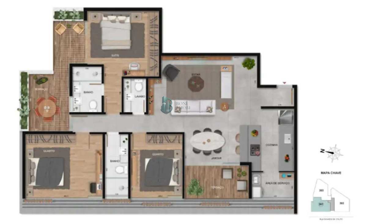PLANTA EXCLUSIVA e tipologia totalmente diferenciada, o que torna o apartamento incomparável as ofertas na região e em todo o mercado!